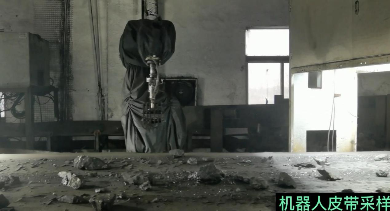 该设备是根据图像识别智能采样系统在可采样区域内随机位置及深度选取,机器人操控其姿态到达采样系统发送的随机采样点位置将材料抓取,并把材料可靠地夹紧,再由机器人移动至放样点位置,采样臂再将材料全部卸至放样点,机器人完成执行动作。